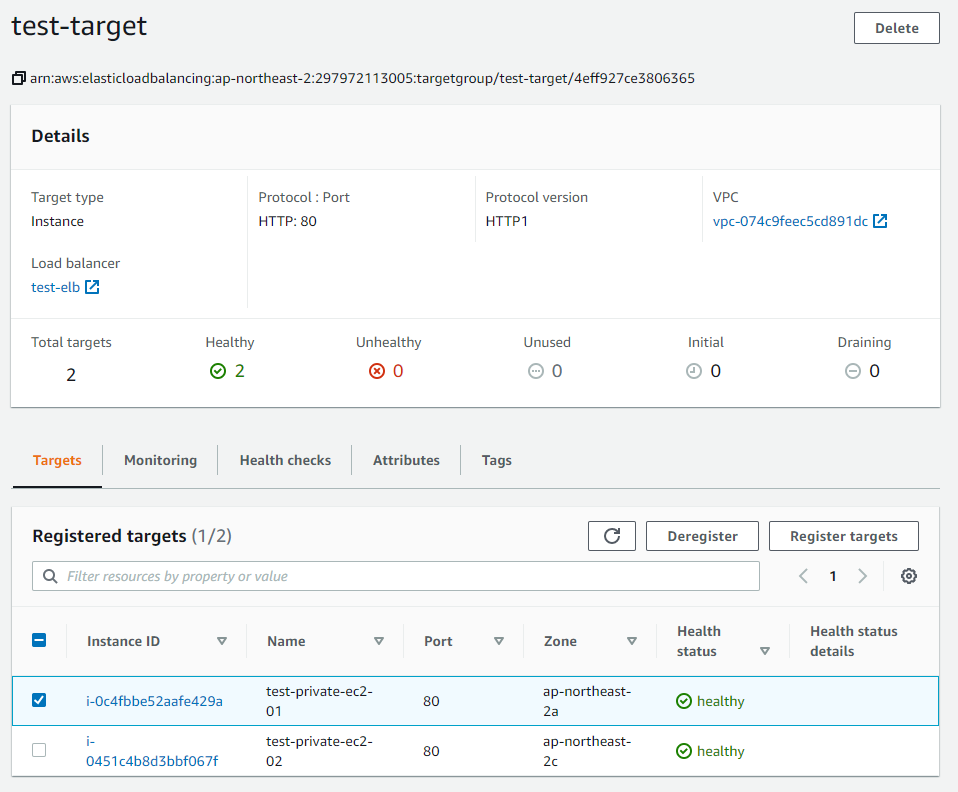 우리가 생성 하였던 private ec2 2개를 대상그룹으로 추가한다.