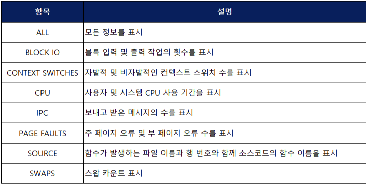 프로파일링 선택 가능한 출력정보